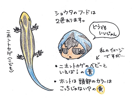 一番下に、ちょっと頑張って描いたニホントカゲの絵があります。