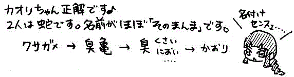 [39] 新キャラ、カオリちゃんはクサガメだと思うが、マシロちゃん、チホちゃんはわからない。 <2015/08/05 14:32:22> reXsPWr1P