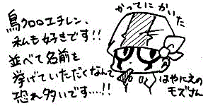 >判別用に番号じゃつまらないからとつけてみましたが、楽しんでいただけたなら幸いです!